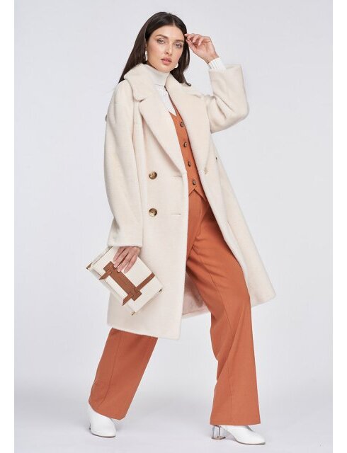 Пальто из экомеха - это стильная и этичная верхняя одежда, изготовленная из высококачественного искусственного ворса (акрил, полиэстер, шерсть), имитирующая натуральный мех без использования животных. Оно предназначено для сохранения тепла, защиты от холода, создания модных образов и осознанного потребления. Длина изделия - 100 см. Размеры - 44, 46, 48, 50, 52, 54. Цвет - бежевый. Застежка - пуговицы.