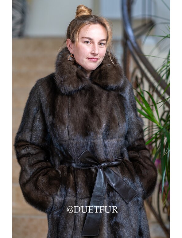 Пальто из русского баргузинского соболя в продольной раскладке - это элитное меховое изделие, где шкурки (самого дорогого темного соболя) расположены вертикально, вдоль тела. Такая раскладка подчеркивает струящийся эффект, дороговизну меха и визуально удлиняет силуэт, обеспечивая максимальную теплоизоляцию, долговечность (10+ лет) и роскошный вид. Пальто сочетает классическую элегантность и максимальную защиту от холода.