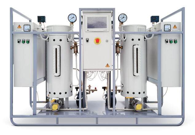 Паровой котел электрический UPE-1000 - это промышленный парогенератор высокой мощности (1000 кг пара в час), для получения насыщенного пара из электрической энергии. Оборудование, выполненное из нержавеющей стали, используется для обеспечения технологических процессов (пар) в пищевой, медицинской промышленности, а также для нужд прачечных и производства. Номинальный ток - 950-1050 А. Регулировка мощности - 25-100%. Давление - от 0,05 до 1,2 МПа. Масса - 450 кг. Мощность - 700 кВт. Комплектация данного котл: корпус парового котла на раме, электродная группа, шкаф управления, фильтр питательной воды, реле давления настраиваемые, патрубок подключения пара с ответным фланцем, автоматика поддержания уровня, световая индикация, регулятор мощности (контакторное управление), защита от "сухого хода", запорная арматура, дренажный шаровый кран, электрооборудование, КИПиА, колонка датчиков уровня, предохранительный клапан, манометр, указатель уровня воды, питательный насос.