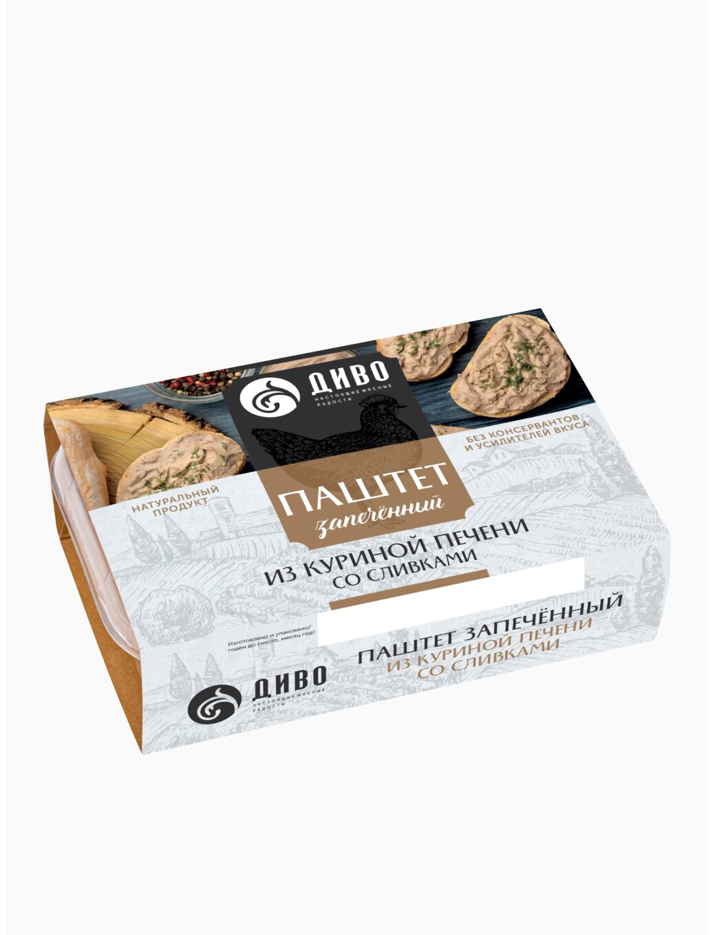 Паштет приготовлен из охлажденной куриной печени. При его изготовлении не используются никакие искусственные добавки, направленные на удешевление продукта и продление его срока годности. Паштет можно использовать в качестве наполнения для бутербродов и для приготовления различных закусок.