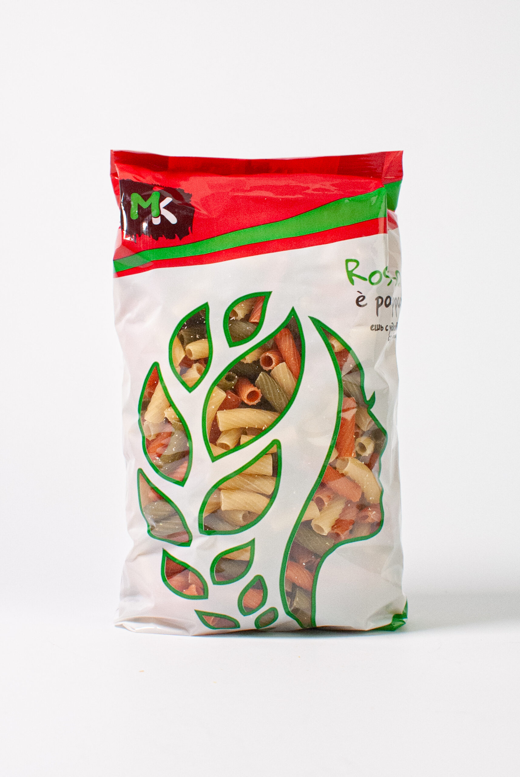 Состав: Мука из твердой пшеницы высшего сорта, обезвоженный шпинат 6%, обезвоженный томат 4%, вода из артезианской скважины.