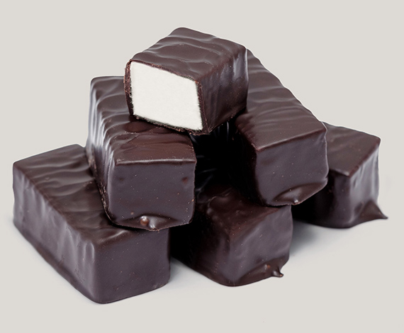Состав: cахар, глазурь кондитерская (сахар, заменитель масла какао, какао - порошок, эмульгатор: лецитин соевый, ароматизатор «Ванилин»), вода, патока, пюре яблочное, желирующий агент: агар; белок яичный сухой; регуляторы кислотности - кислота молочная; ароматизатор.