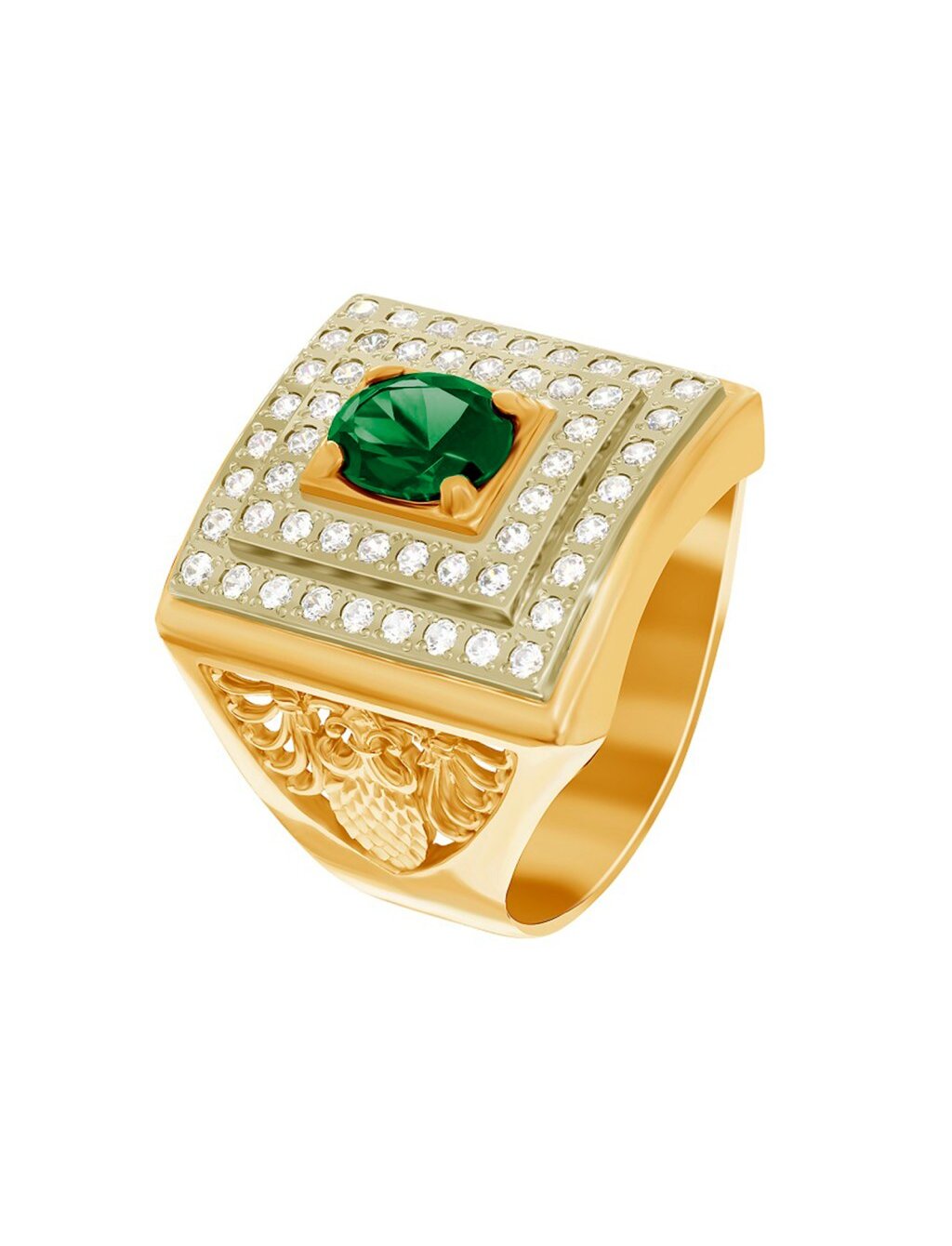 Печатка Кедр с изумрудом - это мужское ювелирное кольцо с широкой верхней частью (щитком), украшенное зеленым драгоценным камнем. Такой перстень символизирует силу, благородство и, благодаря изумруду, призван привлекать удачу, дарить душевное равновесие и защищать от негатива. Обычно используется в качестве амулета здоровья и талисмана, притягивающего счастье и верность. Печатка Кедр с изумрудом со вставками - изумруд гидротермальный - зелёный, чистота - 0, фианит - бесцветный, чистота - 0. Ширина печатки - 20мм.