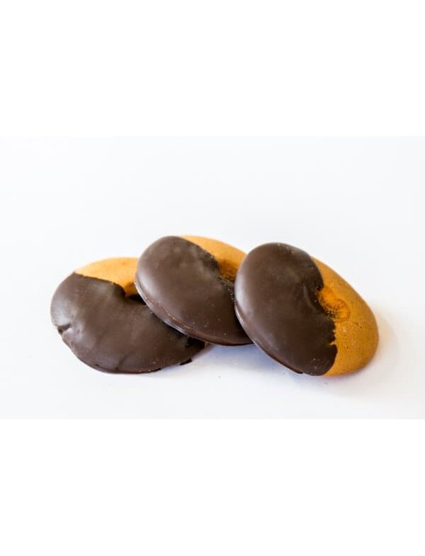 Воздушное печенье, с добавлением фруктового джема, покрытое шоколадной глазурью.