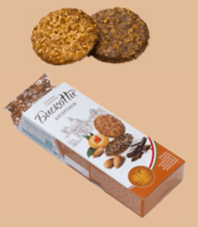 Печенье сдобное «БИСКОТТИ ДЕСЕРТНОЕ» Вкуснейшее печенье изготовленное по уникальной рецептуре гармонично сочетает в себе дробленые абрикосовые косточки, кусочки шоколада и натуральный кофе. Верх печенья покрывается измельченной абрикосовой косточкой и посыпается тающим во рту виноградным сахаром. Донышко печенья покрывается шоколадом и бисквитной крошкой.