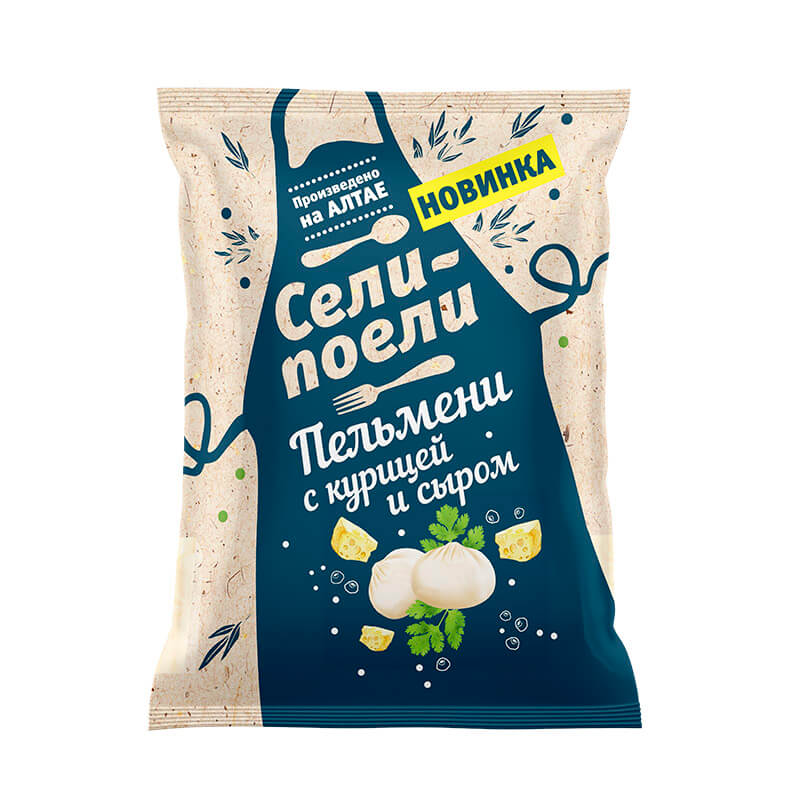Пельмени ТМ «Сели-поели» с курицей и сыром – это готовые полуфабрикаты, состоящие из тонкого теста и начинки из куриного мяса с добавлением сыра. Начинка может включать различные виды сыров, такие как моцарелла или другие твердые сыры, для придания вкуса и кремовой текстуры. Пельмени легко готовятся – просто нужно положить их в кипящую воду и варить до готовности.