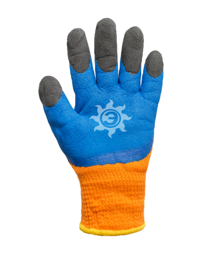 Перчатки акриловые со вспененным латексным покрыт. глубокого мокания основа 10 класса вязки. Покрытие ладони - текстурированный латекс глубокого мокания коричневого цвета. Перчатки предназначены для использования до - 10 градусов Цельсия. Текстурированное латексное покрытие предотвращает проскальзывание обледенелых или холодных предметов или влажных и скользких предметов, предотвращает намокание перчатки. Плотная толстая основа со специальным начесом внутри сохраняет тепло рук и позволяет с комфортом работать на улице в зимний период при любой температуре до -10. Длинный манжет перчатки обеспечивает хорошую защиту от попадания снега на руку, конструкционная особенность манжета состоит в том, что при своей хорошей плотности он хорошо тянется и может быть одет сверху на рукав одежды для предупреждения попадания снега и холода под рукав или перчатку. Плотный двойной цветной оверлок с латексным кольцом предотвращает скатывание манжета - перчатка всегда остается плотно зафиксированной на руке.