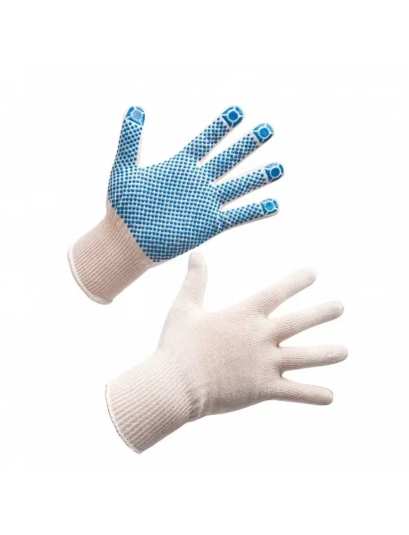 Перчатки х/б с ПВХ-точка, 10 класс, 5 нитка подходят для использования в складских помещениях, при ремонте, а также в садовых работах.