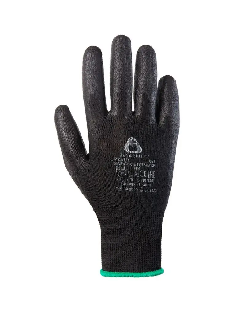 Перчатки из полиэфирной пряжи с полиуретановым покрытием, черный комфортные и эластичные вязаные перчатки из полиэфирной пряжи.На ладони и пальцах нанесено тонкое полиуретановое покрытие.Улучшенный воздухообмен обеспечивается благодаря отсутствию покрытия на внешней стороне ладони.Полиуретановое покрытие на ладони и пальцах устойчиво при работе с жирными масляными деталями.
