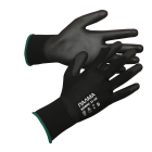 Перчатки ПАЛМА ЭСЕНС ПЛЮС 11-10 бесшовные вязаные перчатки из нейлона с полиуретановым покрытием в области кончиков пальцев и ладонной части. Базовая эргономичная модель с максимальным уровнем защиты от истирания. Не стесняют движений, подходят для широкого спектра работ, в том числе для тонких и точных манипуляций. Не оставляют следов на поверхностях при контакте. Черный цвет хорошо маскирует загрязнения, продлевая срок носки.