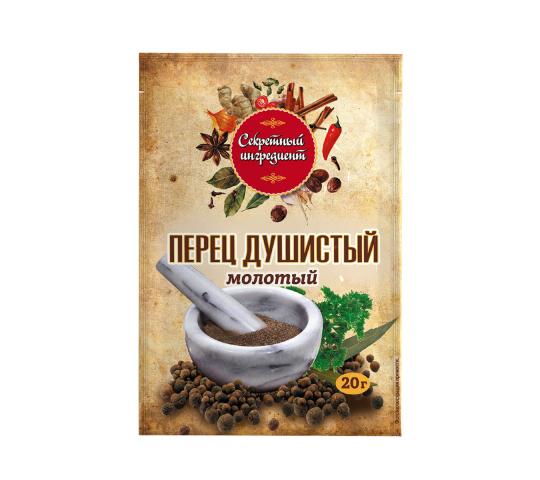 Перец душистый молотый 20 гр пряность, получаемая из высушенных незрелых плодов (ягод) вечнозелёного тропического дерева пименты лекарственной (Pimenta dioica) из семейства миртовых.Аромат сложный, смешанный, сочетает аромат четырёх пряностей: мускатного ореха, горчицы, гвоздики и корицы.
