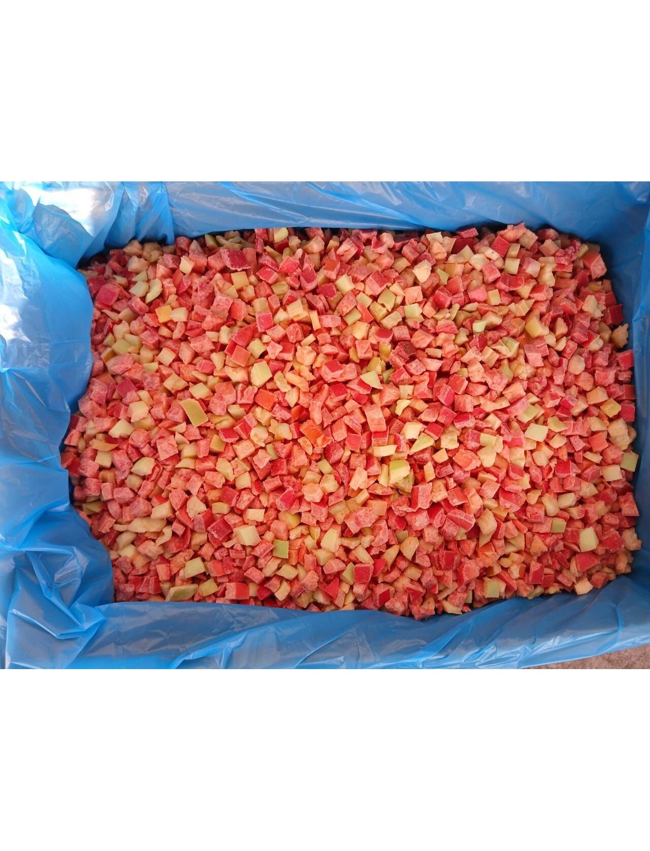 Замороженный перец кубик микс меланж — отличный выбор для ресторанов, кафе, кейтеринга и домашней кухни. Подходит для приготовления салатов, супов, рагу, пиццы, соусов и гарниров. Яркая смесь перцев добавляет вкус и цвет любому блюду.