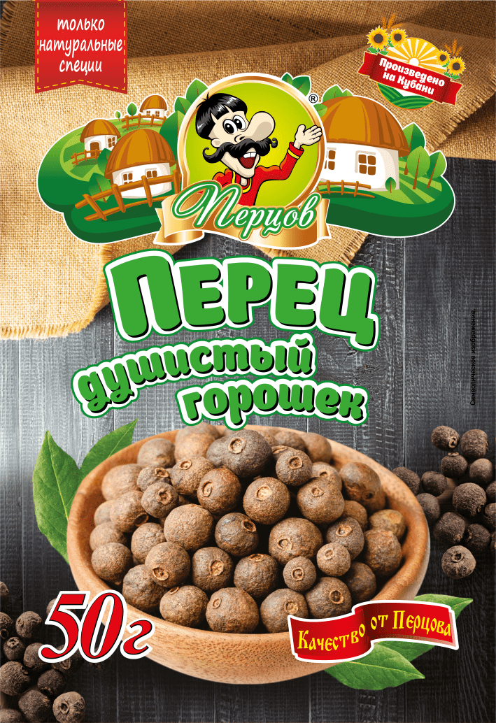 Душистый перец горошек — высушенный недозревший плод вечнозеленого тропического дерева — пименты. Душистый перец в виде горошка получается в результате сушки сине-зеленых ягод пименты. Специя из перца горошка острая, жгучая, придает особый аромат мясным блюдам, соусам и маринадам.