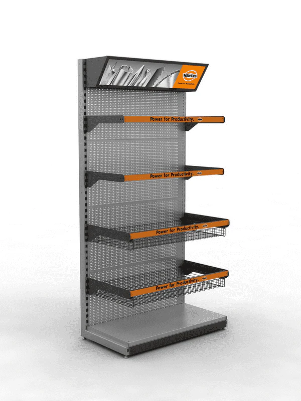 Перфорированный стенд с сетчатыми корзинами