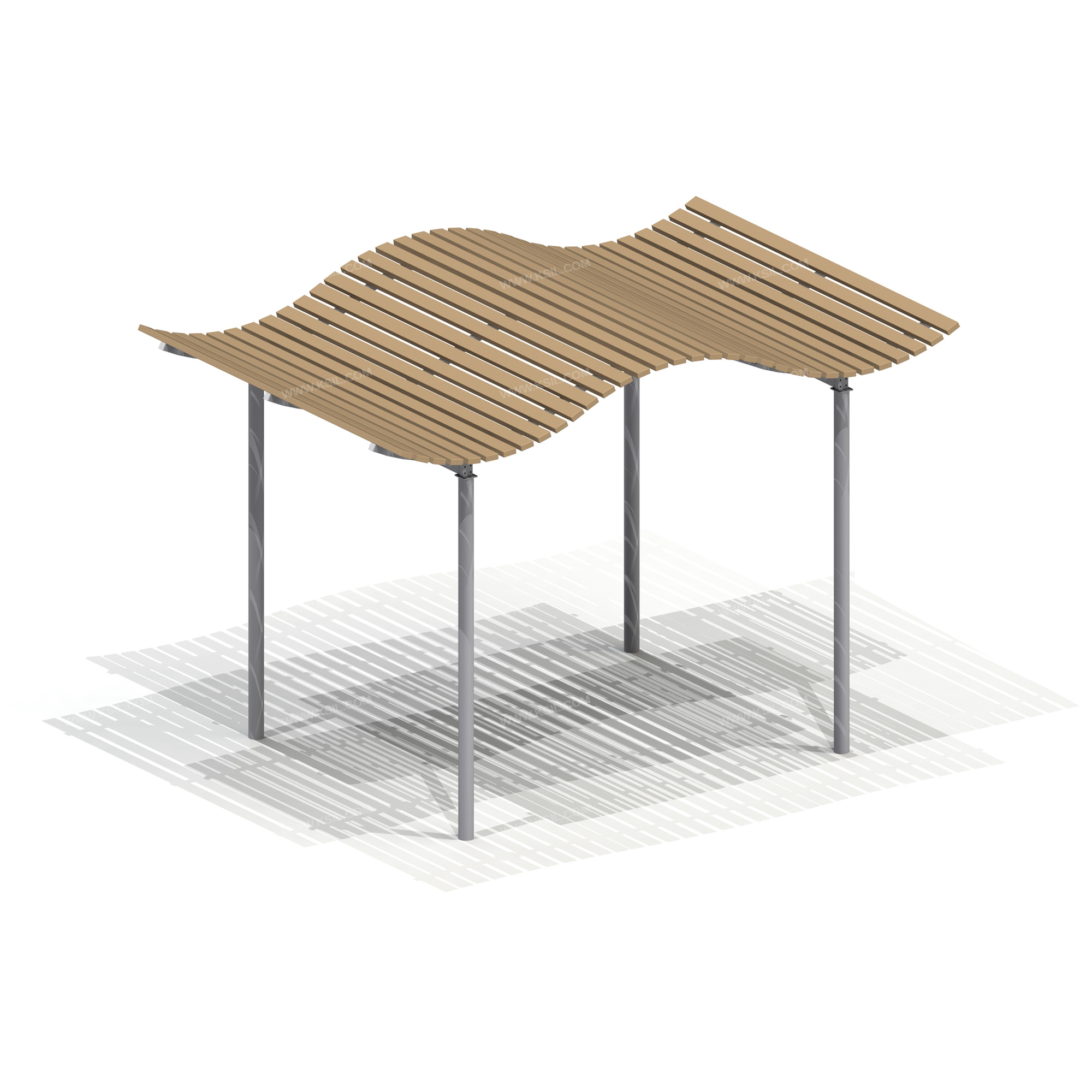 Пергола представляет собой устойчивую конструкцию, предназначенную для комфортного отдых на открытом воздухе, обеспечивающую защиту пользователя от воздействия солнечных лучей и атмосферных осадков, но не являющуюся оборудованием детской игровой площадки. Пергола состоит из волнообразного настила, закрепленного на металлическом каркасе, консолей и несущих опорных стоек.Волнообразный настил состоит из доски дерева хвойных пород, сечением не менее - 40*100 мм. Каркас крыши состоит из равных частей профильной трубы дугообразной формы сечением не менее - 50*50 мм. Габаритные размеры - 4495*3000*3100 мм. Ширина зоны безопасности - 4000 мм. Длина зоны безопасности - 5495 мм.
