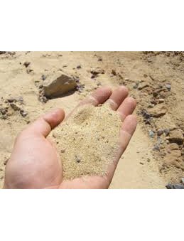 Песок строительный имеет полимиктовый состав и светло-серый цвет. Форма зерен в основном неправильная, угловатая и угловато-окатанная. Это сыпучий неорганический материал с размером зерен до 5 мм, образующийся при разрушении горных пород (природный) или дроблении (искусственный). Используется как заполнитель в бетонах, строительных растворах, при укладке фундамента, дорожном строительстве, а также для дренажа, благоустройства территорий и пескоструйной обработки. Объемная насыпная масса - 1421 кг/м.