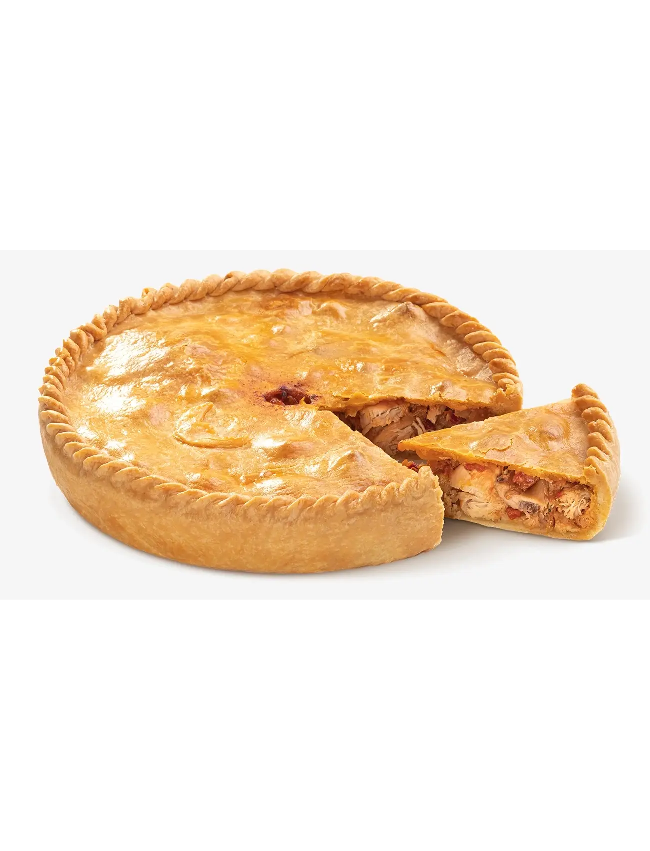 Начинка: бедро куриное охлажденное филе, лук репчатый, томаты без кожицы, паприка копченая, аджика сухая, масло подсолнечное, перец болгарский красный, сахар, чеснок, соль, перец чили. Песочное тесто: мука пшеничная в/с, масло сливочное 82,5%, вода, соль.