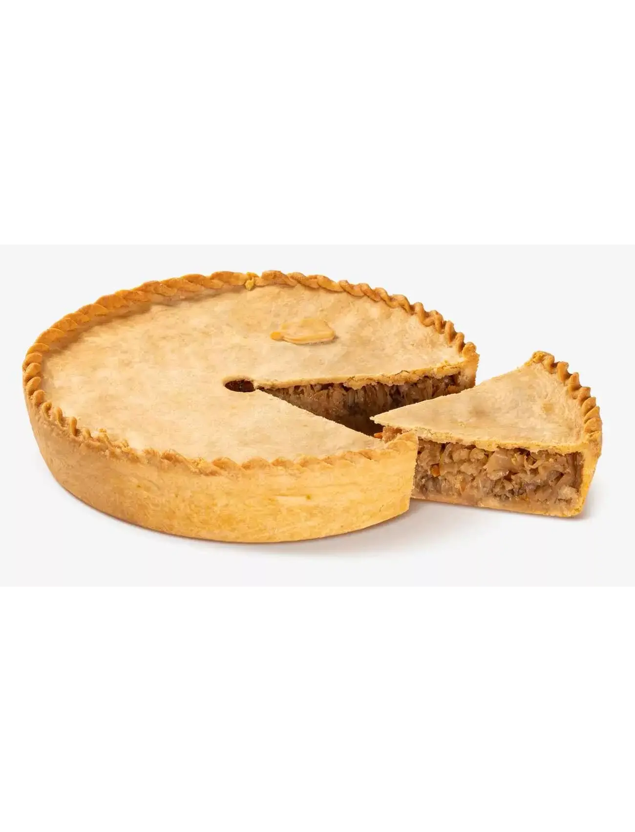 Начинка: капуста, шампиньоны, лук репчатый, морковь, петрушка, масло подсолнечное, соль, перец черный молотый. Песочное тесто: мука пшеничная в/с, масло кокосовое, вода, разрыхлитель, соль.