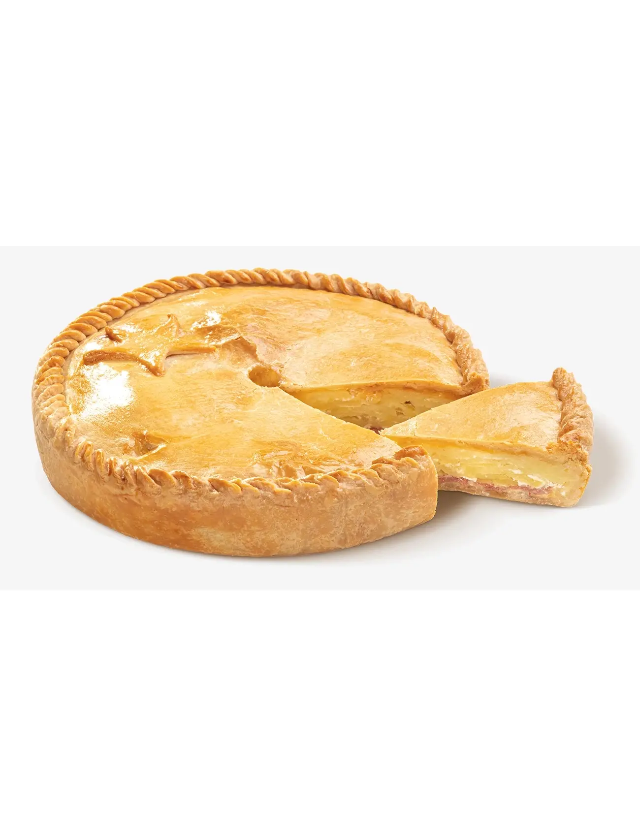 Начинка: картофель, молоко цельное пастеризованное 3,2%, розмарин свежий, соль, перец черный молотый, бекон с/к, чеснок, сливки 20%, сыр гауда. Песочное тесто: мука пшеничная в/с, масло сливочное 82,5%, вода, соль.
