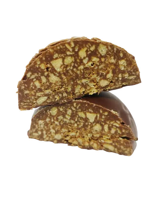 Состав: Люпин (австрийские бобы), гороховый белок (Бельгия), яблочное пюре, эритрит (подсластитель), стевия (подсластитель), сироп цикория (пищевые волокна), какао-масло, какао-тертое, абрикосовая косточка (сырая), ржаной солод, инулин, экстракт мяты.
