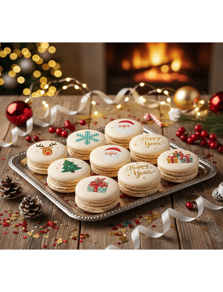 Новогоднее волшебство в каждой крошечной детали. Представляем восхитительный набор из 9 ярких макаронс с нежной начинкой, которые станут настоящим украшением зимнего стола. Это не просто сладкие угощения, это шедевры кулинарного искусства, вдохновленные волшебством зимних праздников. Каждый десерт украшен оригинальными рисунками и символами, посвященными Новому Году, превращая его в произведение искусства. Это прекрасный подарок для друзей, коллег и любимых людей, который подарит незабываемые эмоции. В приведенном примере цена указана за 9 шт. и включает в себя оформление и упаковку.