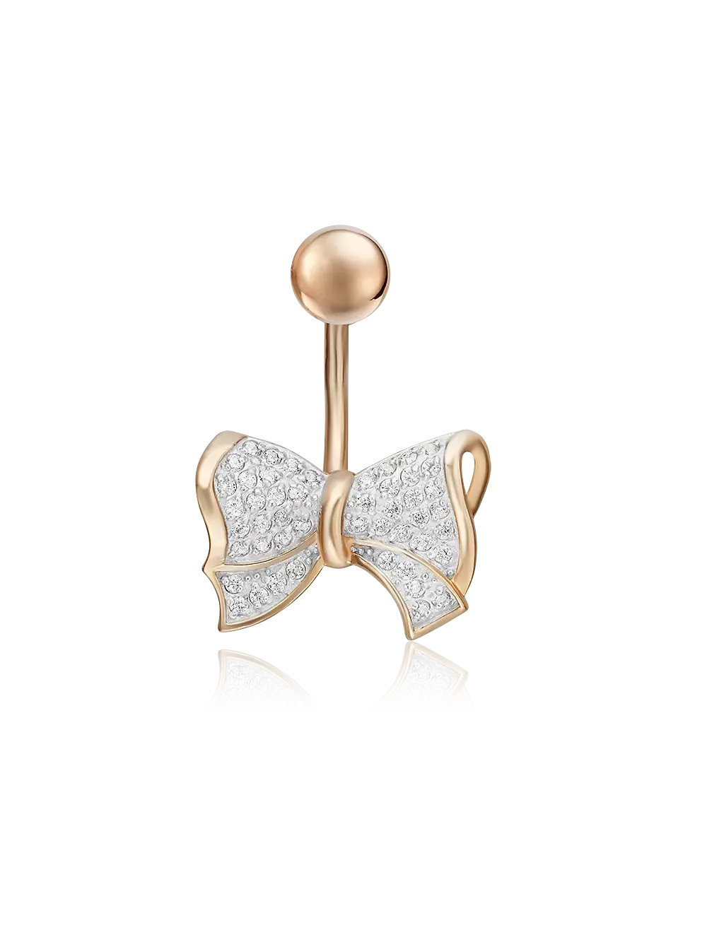 Пирсинг в пупок "Бант" - это пирсинг в пупок из красного золота с фианитами, является изящным ювелирным украшением, предназначенное для ношения в проколе пупка. Оно подчеркивает индивидуальность, акцентирует зону живота в летних образах и служит стильным аксессуаром, изготовленным из гипоаллергенного золота 585 пробы. Вставка - фианит (недрагоценные вставки). Средняя масса - 2.59 г. Покрытие - родий.