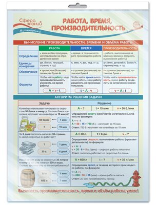 Плакат в пакете. Математика в 4 классе рекомендован для занятий по математике с учащимися 4-х классов общеобразовательных организаций. Плакат даст представление о понятиях "работа", "время", "производительность", алгоритмах их вычисления, познакомит с основными формулами, поможет выработать и закрепить навыки необходимых математических действий. Для удобства каждый текстовой блок проиллюстрирован примерами и выделен соответствующим цветом. Плакат имеет удобный формат А3, его легко разместить в классной комнате, также с ним удобно изучать тему в домашних условиях. Формат - 340*490 мм.
