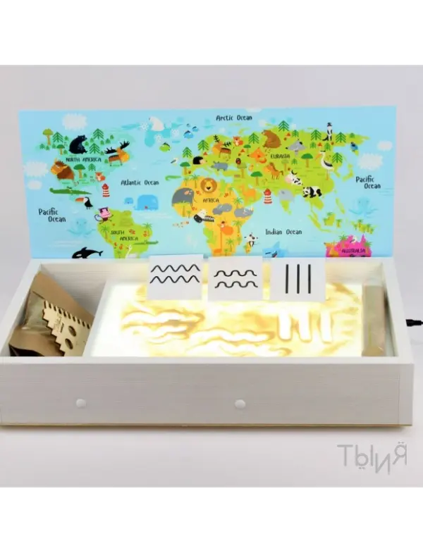 Планшет для рисования песком "Магия песка" - это компактный и функциональный световой планшет для рисования песком. Способствует развитию мелкой и крупной моторики, творческих способностей. Планшет сочетает в себе элементы творчества и терапевтической практики. Методика песочной терапии давно применяется психологами для снижения тревожности и коррекции эмоциональных нарушений у детей и взрослых. Благодаря универсальности, планшет востребован в детских садах, центрах развития, творческих студиях. Размер - 500*300*80 мм. Материал - ЛДСП. Цвет корпуса - белый. Подсветка - белоснежная. Крышка идет в комплекте, есть отсек для хранения. В комплекте - песок, 500 гр.
