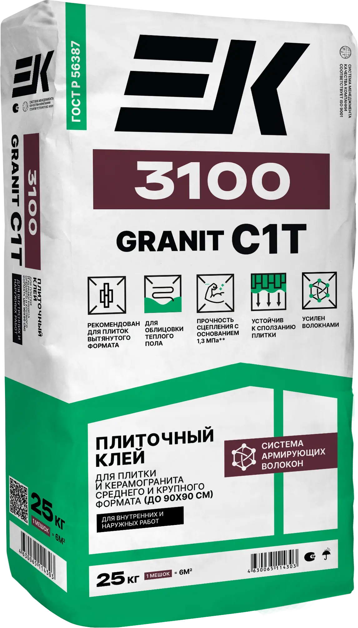 Плиточный клей для плитки и керамогранита вытянутого формата ЕК 3100 GRANIT (С1 T)