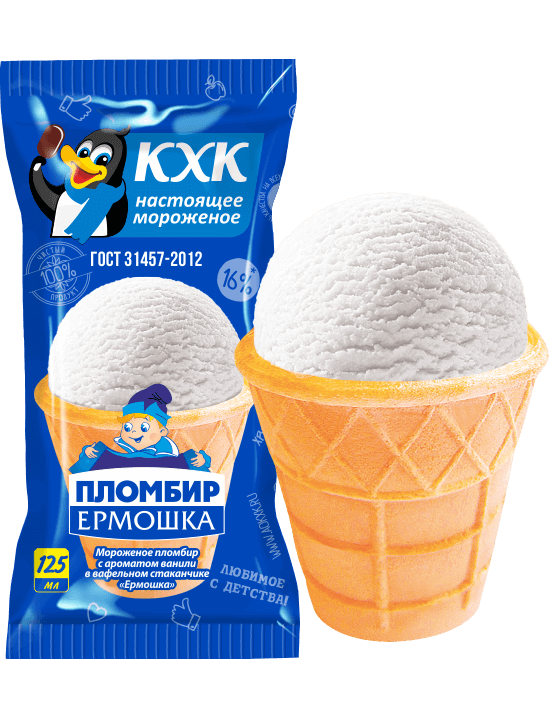 Пломбир «Ермошка» бережно приготовлен по классическому рецепту из отборного цельного коровьего молока и настоящего сливочного масла. Это популярнейшее мороженое полюбилось людям разных возрастов и поколений. За своё безупречное качество и классический вкус пломбир удостоен почётной награды — золотой медали Всероссийского конкурса «100 лучших товаров России».