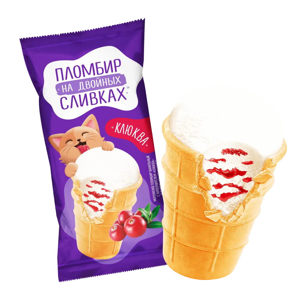 Пломбир ванильный с клюквенным джемом в вафельном стаканчике