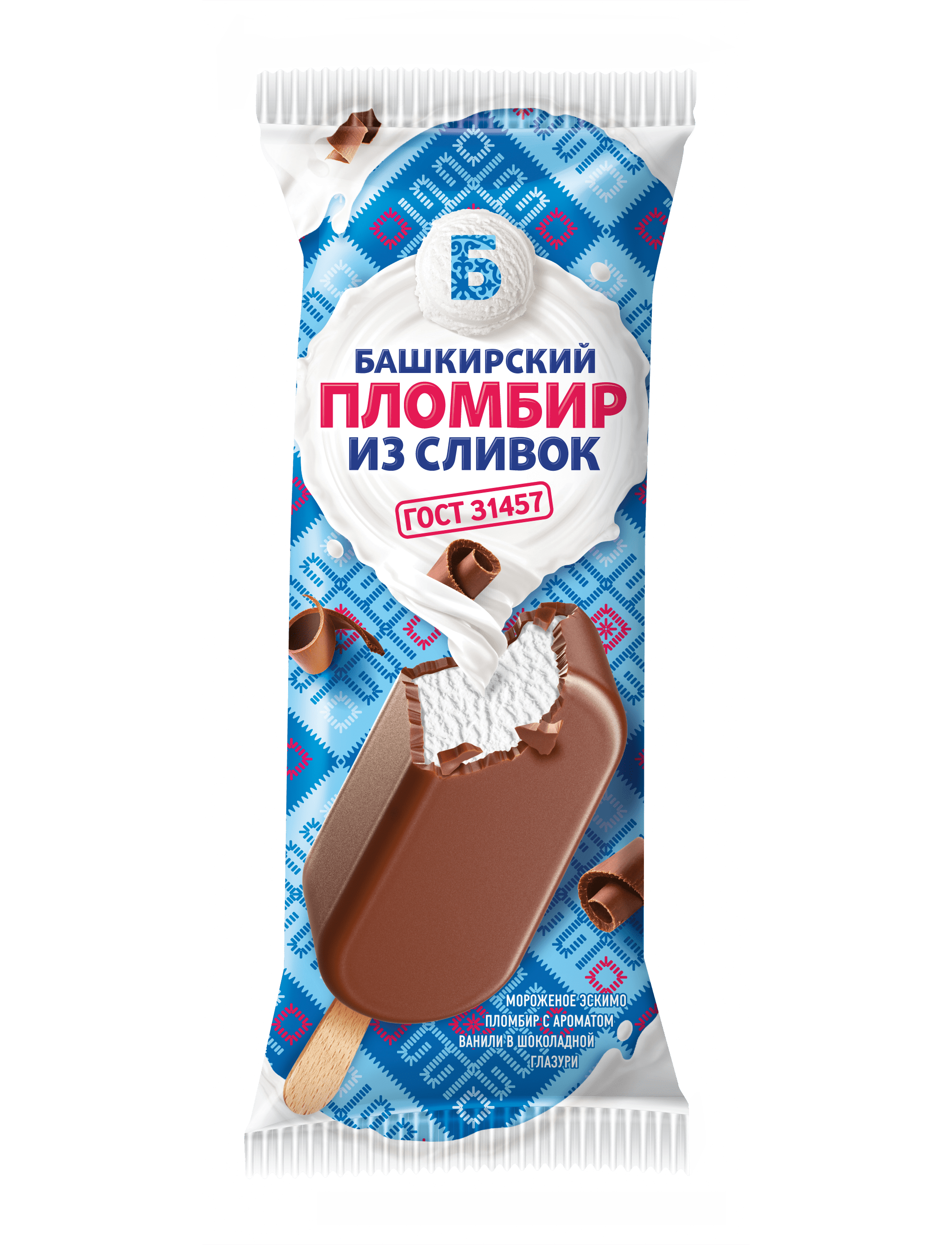 Нежнейший пломбир, произведенный по уникальной рецептуре из натуральных сливок башкирских коров.