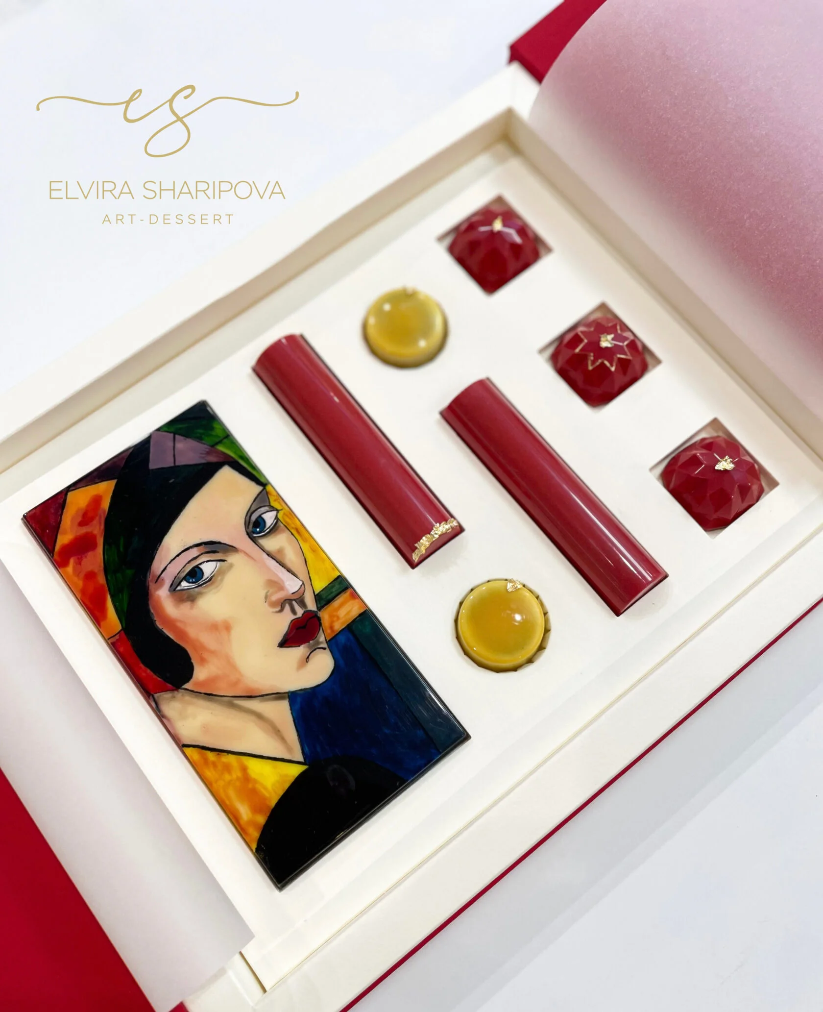 Эксклюзивный подарочный набор из шоколадной расписной плитки, батончиков и конфет.