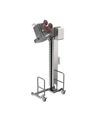Подъемник-опрокидыватель передвижной используется для механизированной загрузки различного технологического оборудования (мешалок, волчков, массажеров и пр.) продуктами мясной, кондитерской или молочной промышленности, обычно с применением технологических тележек-чанов емкостью 100 или 200 литров. По индивидуальному заказу захват подъемника может быть спроектирован под тележки другой емкости, а также тележки-рикши.Все наружные части подъемника (обшивки, захват, копир и основание) выполняются из нержавеющей стали.