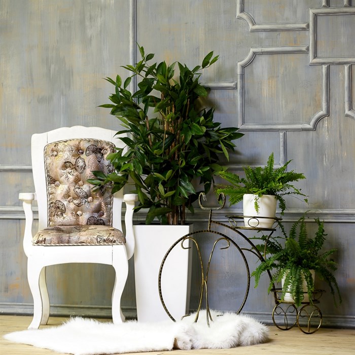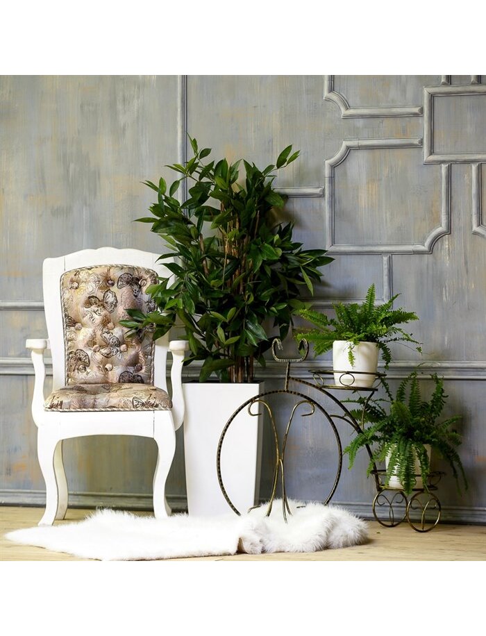 Подставка Велосипед предназначена для размещения двух цветков. Легкая и устойчивая конструкция в форме велосипеда изготовлена из резного металлического прутка, окрашенного в черный с золотом цвет. Подставка для цветов станет прекрасным дополнением декора вашего дома.