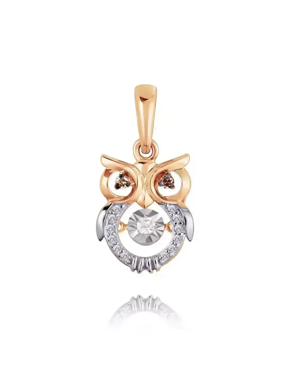 Подвеска из красного золота с "танцующим" бриллиантом - это ювелирное изделие, в которых камень закреплен подвижно (на двух точках), благодаря чему он непрерывно вибрируют и мерцают при малейшем движении. Подвеска создает эффект парения, усиливая игру света, и призвано подчеркнуть изысканный вкус, женственность и уверенность. Красное золото придает украшению теплый оттенок, который классически сочетается с бриллиантовым сиянием. Средний вес - 2,22 гр. Обработка - алмазная огранка, родирование. Вставка - бриллиант.. Тип огранки - круглый. Металл - красное золото 585 пробы.