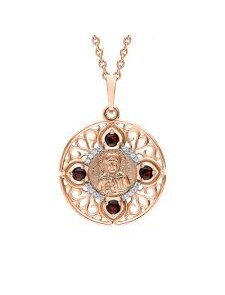 Подвеска из Серебра с гранатами, фианитами - это православный нательный образ-оберег. Она служит личным молитвенным щитом, символом веры и заступничества, предназначенным для защиты от зла, исцеления, помощи в семейных делах, работе и житейских трудностях. Гранаты часто символизируют духовный пыл, а фианиты придают торжественность. Такую подвеску носят на цепочке или шнурке, часто скрывая под одеждой, как символ веры. Высота - 31 мм. Описание камней - 4 граната, 16 фианитов. Толщина - 6 мм. Ширина - 22 мм. Средний вес - 3 гр.