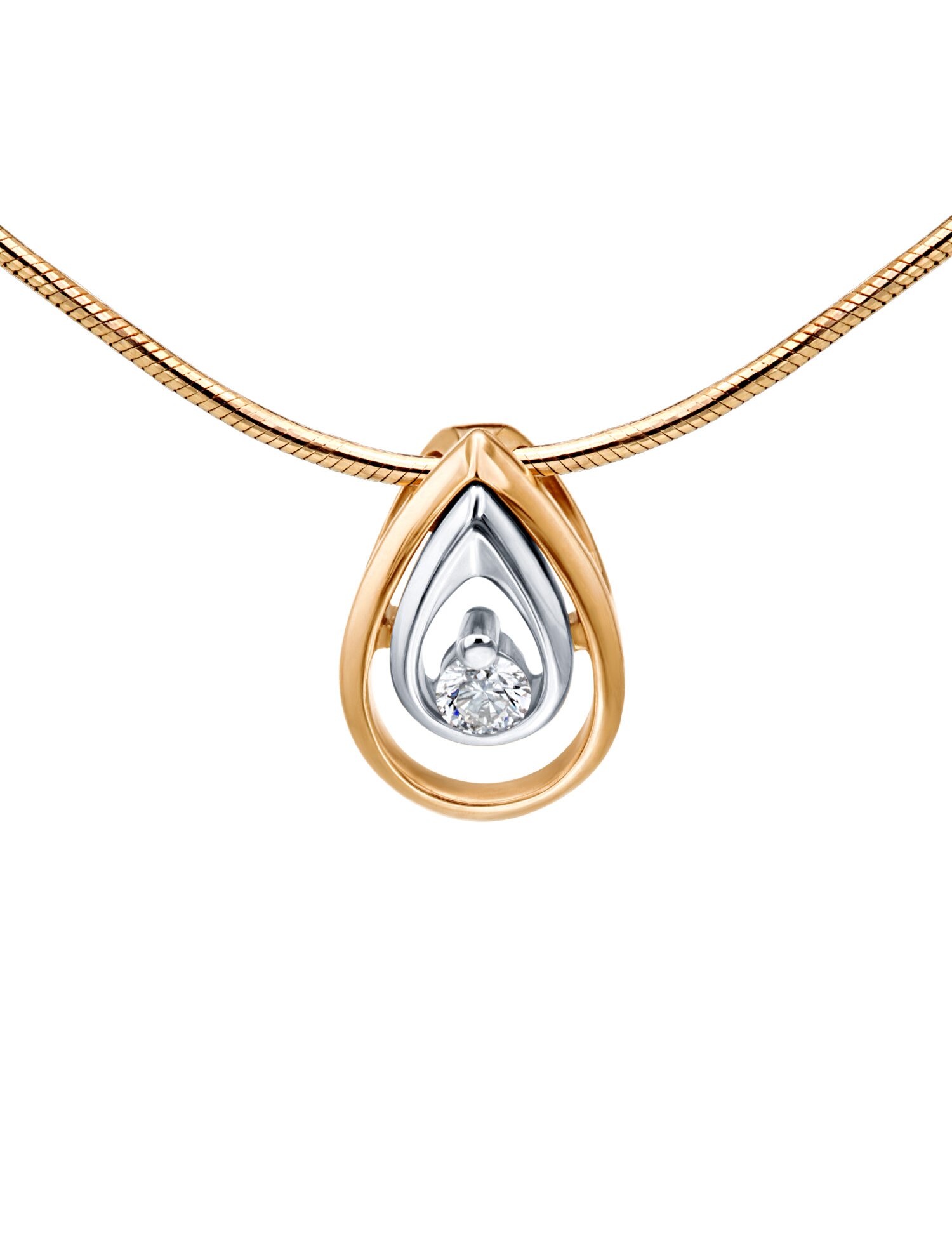 Подвеска Капля с бриллиантом Золото 585 красное - это классическое, элегантное ювелирное украшение в форме капли (слезы) с одним драгоценным камнем. Красное золото (сплав с медью) обеспечивает долговечность, а бриллиант придает сияние. Оно предназначено для ношения на цепочке, подходит для повседневного и вечернего образа. Вставки - бриллиант кр57 4/5 А, количество -1, вес - 0,06гр., цепь - 1, вес - 3,50 гр. Общтй все - 4,47 гр. Размер - 40 см., 45 см.