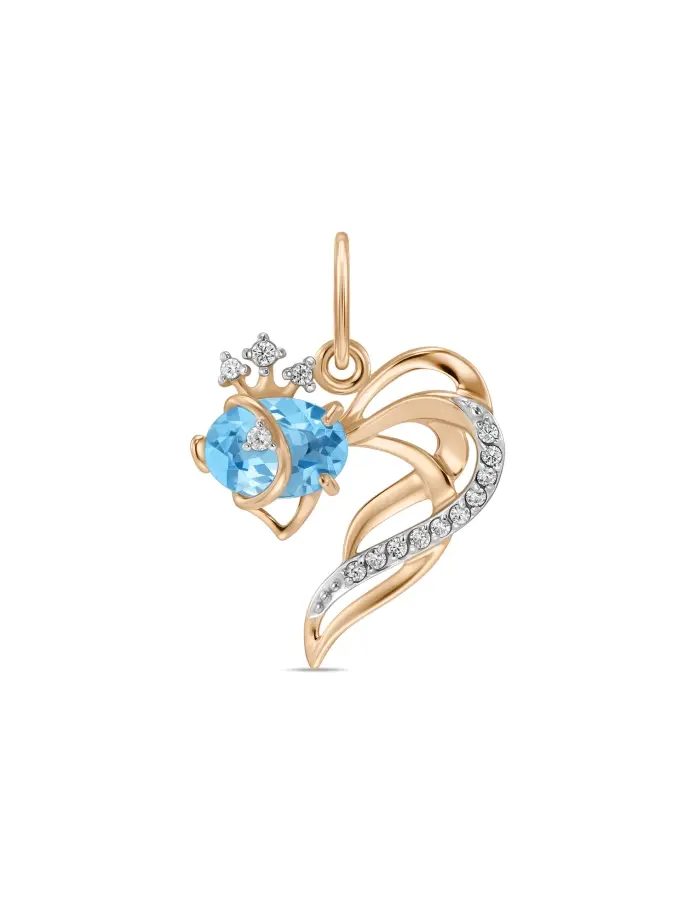 Подвеска с топазом и фианитами - это ювелирное украшение-талисман, символизирующее исполнение желаний, удачу и финансовое благополучие. Она совмещает эстетику морской тематики с защитными свойствами камней, часто используется как подарок для привлечения счастья. Тело рыбки украшено топазом, а чешуя или плавники - мелкими фианитами, создающими яркий блеск. Металл - красное золото 585 пробы. Вставки: 1 топаз огранки "Овал", весом 0.84 карат, 14 фианитов огранки "Круглая", весом 0.14 карат.