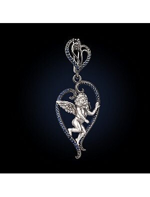 Подвеска "Сердце Амура" - это ювелирное украшение или бижутерия, символизирующая любовь, преданность и сильные чувства. Выполнен в виде сердца с изображением маленького крылатого бога любви - Амура (Купидона). Используется как романтический подарок, талисман или стильный аксессуар для создания нежного образа. Выполнена в виде классической подвески на цепочку или оригинального кулона. Вставка - фианит. Материал - серебро 925 пробы.