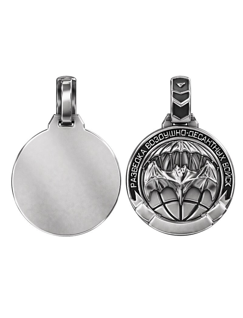 Подвеска ВДВ - это эмблема Воздушно-десантных войск, представляющая собой парашют, окруженный двумя самолетами. Она символизирует принадлежность к "крылатой пехоте", единство десантников и гордость за службу. Используется как памятный сувенир, знак отличия или элемент десантной символики, подчеркивающий элитарность войск. Носится как кулон или подвеска в повседневной жизни. Популярный сувенир для ветеранов, действующих военнослужащих и членов их семей. Материал - серебро 925 пробы. Вес изелия - 9.5 гр.