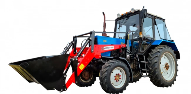 Погрузчик оснащен усиленными стойками толщина металла 6мм сталь 20 Боковины стойки выполнены единой деталью с применением лазерной резки не имеющей лишних сварочных швов ослабляющих конструкцию Конструкция правой стойки включает в себя два кронштейна для установки ресивера пневмосистемы трактора.
