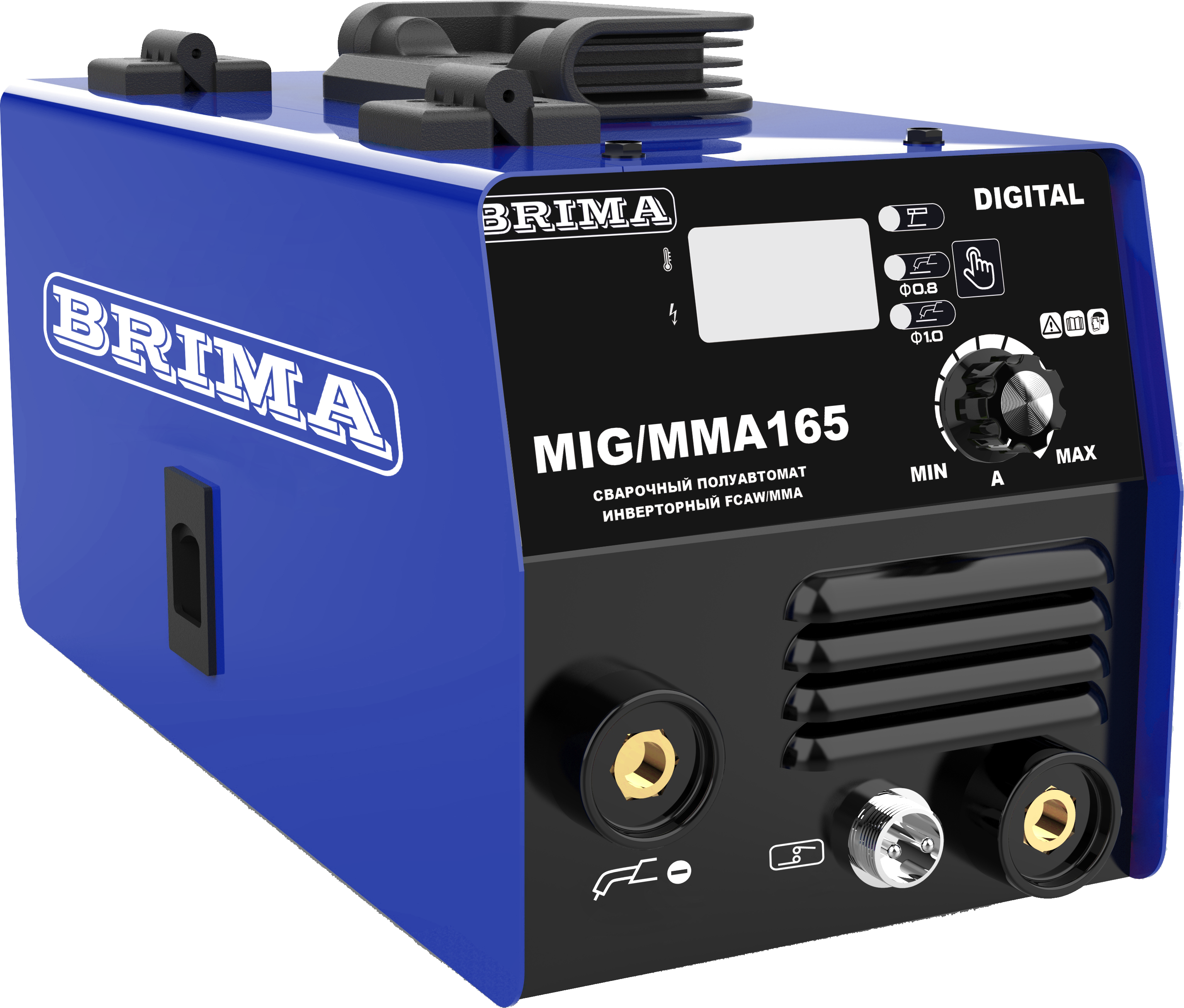 ПОЛУАВТОМАТ MIG/MMA-165 DIGITAL "BRIMA" с катушкой флюсовой проволоки. Универсальный инверторный многорежимный, бюджетный, сварочный аппарат MIG/MMA165 DIGITAL - это надежный, современный и удобный полуавтомат, поддерживающий сварку порошковой проволокой на прямой полярности FCAW и ручной дуговой сварки покрытым электродом MMA . Изделие сконструировано и изготовлено на базе надежных и быстродействующих транзисторов и модулей IGBT, отличающихся высокой надежностью и устойчивостью к неблагоприятным воздействиям окружающей среды.