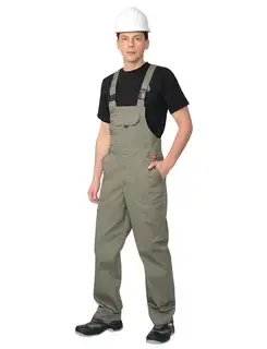 Полукомбинезон рабочий серый с боковыми застежками на пуговицы с двумя боковыми и одним нагрудным карманами.