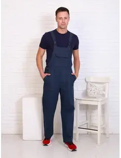 Полукомбинезон саржа синий предназначен для работников ИТР, строителей, автомехаников и других специальностей. Выполнен из мягкой и воздухопроницаемой ткани «Саржа» (100% хлопок). Регулировка длины — с помощью фастексов. В модели есть три кармана: пара по бокам и один нагрудный с клапаном. Пояс застёгивается на три пуговицы, в поясницу вставлена резинка.