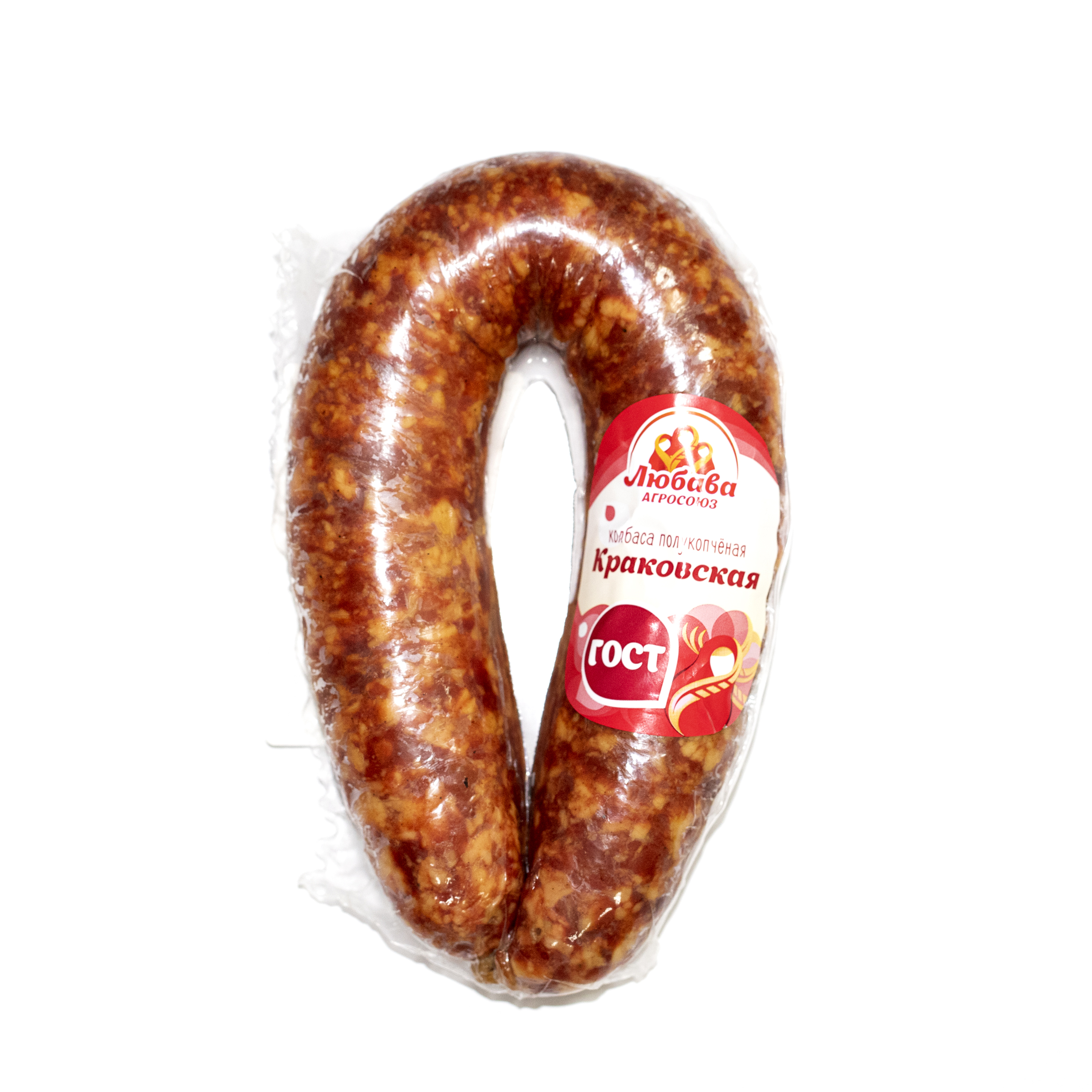 «Краковская» полукопченая колбаса - вкусный продукт, аромат которого быстро наполнит вашу кухню запахом буковой щепы, чеснока и перца. Продукт приготовлен в строгом соответствии ГОСТу из говядины и полужирной свинины. Свиная грудинка обеспечивает продукту дополнительную сочность и аромат, а также красивый вид на разрезе.