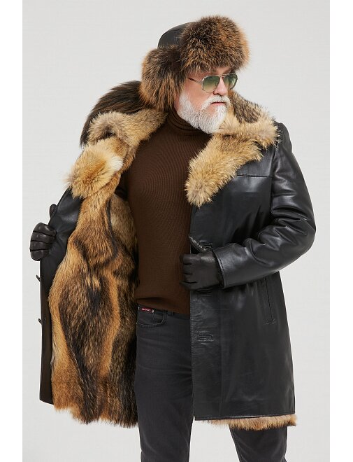 Полупальто из кожи с мехом волка - это эксклюзивное, оригинальное полупальто для сильных, уверенных в себе мужчин, которые не боятся выделиться. Изделие выполнено из натуральной итальянской кожи с теплым меховым подкладом из меха волка, в натуральном цвете. Шикарный меховой воротник защитит от ветра, а меховой подклад от лютого холода. Возможен пошив этой модели в другой расцветки кожи. Силуэт - прямой. Длина - 91-95 см. Температурный режим - до -35 С°.