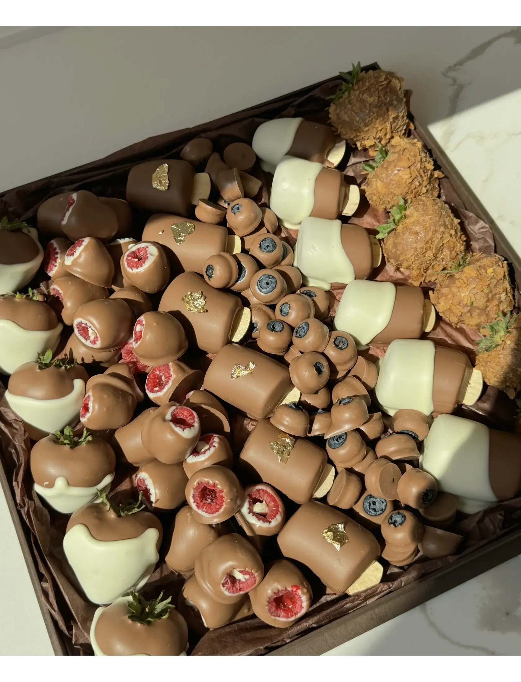 CHOCО MIX — это изысканный набор из самых сочных ягод и фруктов в бархатном бельгийском шоколаде. Здесь тщательно подобранное ассорти: нежная клубника, малина, банан и голубика. Изысканное оформление превращает этот микс в полноценный гастрономический подарок. Это не просто десерт, а сладкий ритуал, в котором сочность, сливочность и эстетика переплетаются в одном удовольствии. Идеален для подарка, особенного вечера или момента, когда хочется чего-то по-настоящему вкусного и красивого.