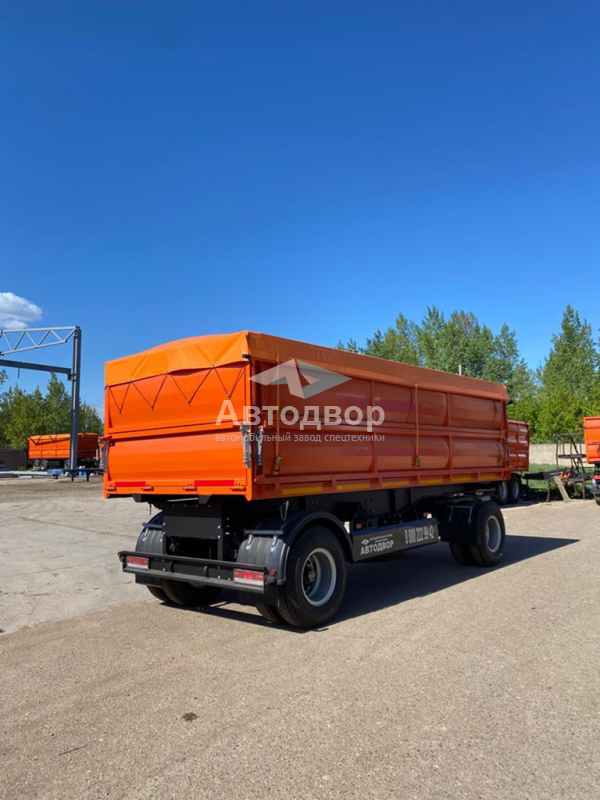 Прицеп Самосвал 2-х осный- предназначен для перевозки и выгрузки сыпучих грузов, таких как строительные материалы, песок, гравий, зерно и т.д. Он позволяет механизировать процесс выгрузки, что значительно упрощает и ускоряет работу, особенно при больших объемах груза. Грузоподъемность 15000кг., материал шасси и каркаса кузова сделаны из высокопрочной стали , нижний ряд бортов на нижней навеске, объем кузова 22 м3, полная масса 20600 кг(пп), снаряженная масса 5600кг(пп).