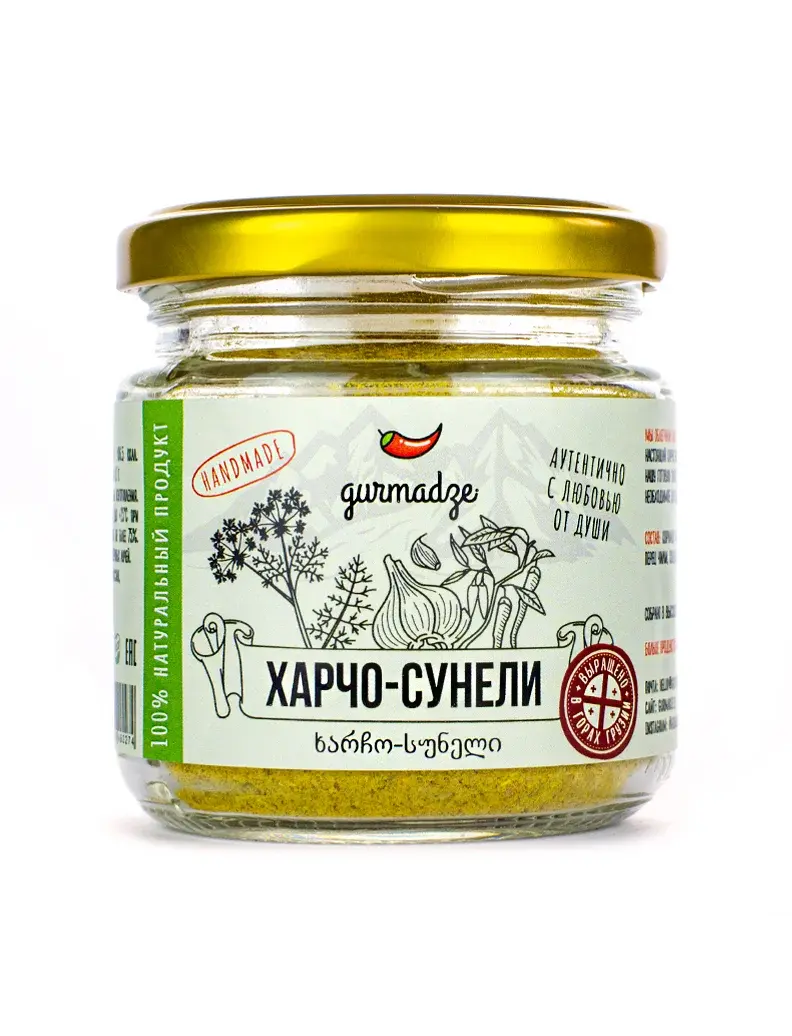 состав: кориандр, шафран имеретинский, уцхо-сунели, укроп сушеный, перец чили, кондари (чабер горный)